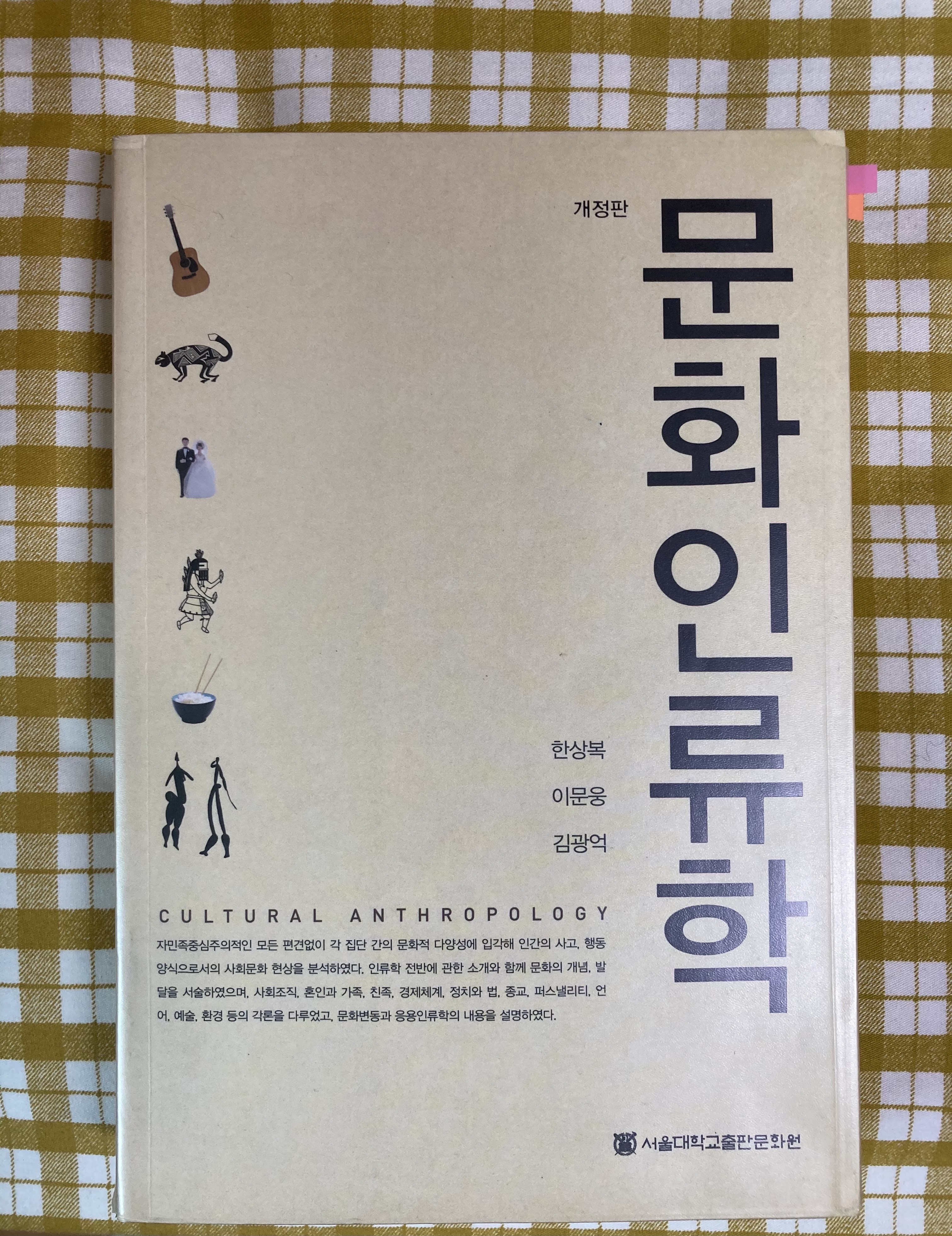 1. 달달 외워야하는 개론서가 된 문화인류학/ 가격:만원 / 상태 최상 / 필기밑줄 거의x -> 판매완료