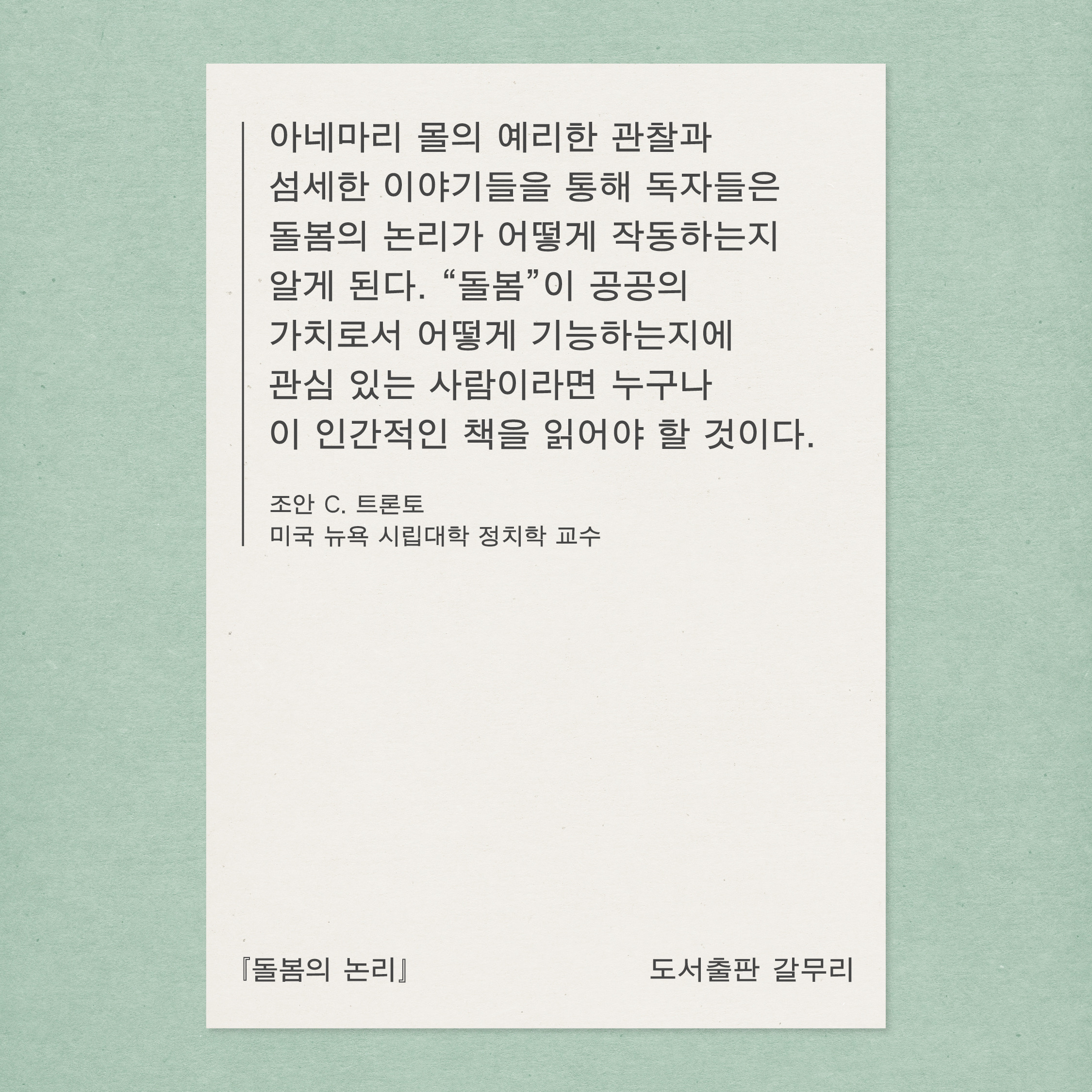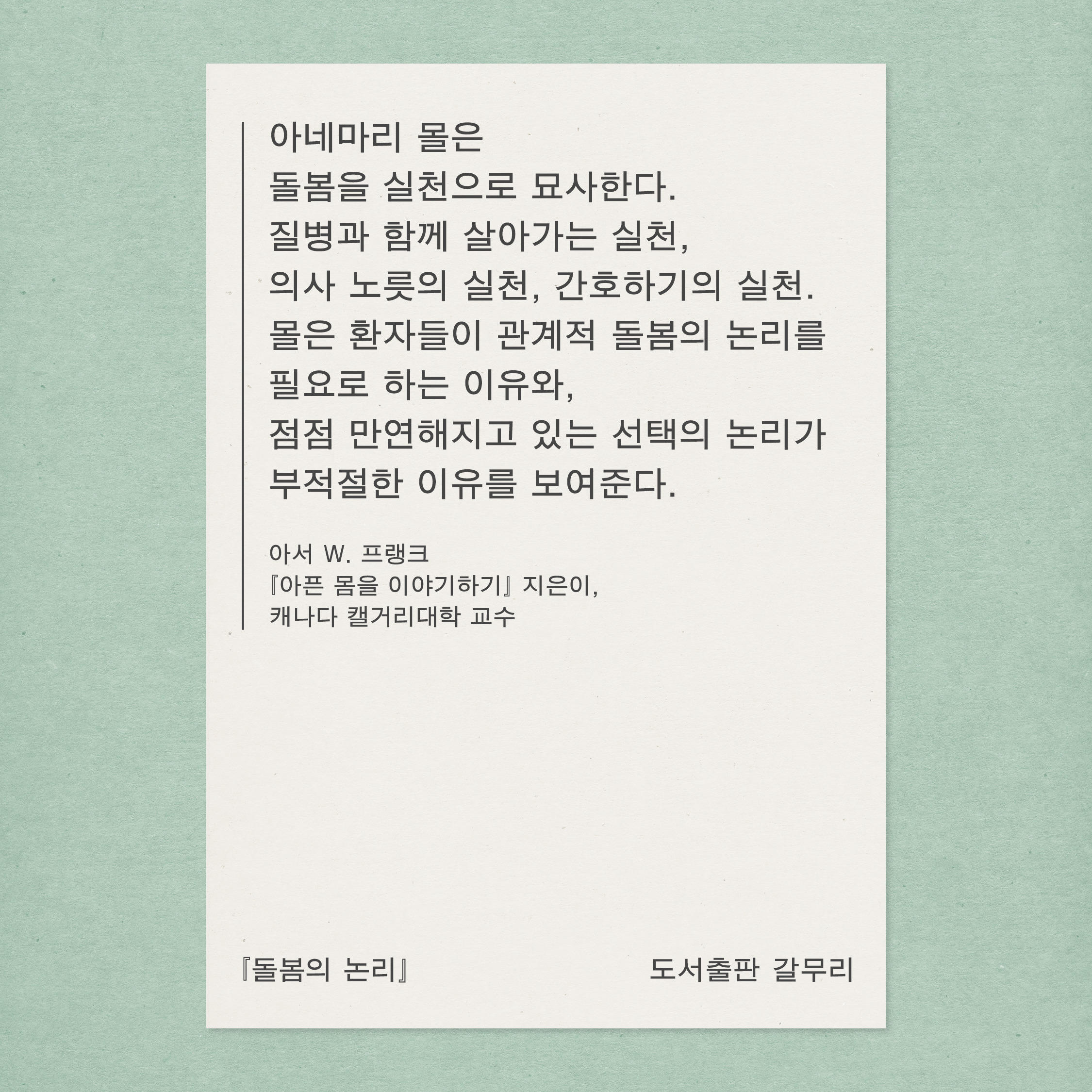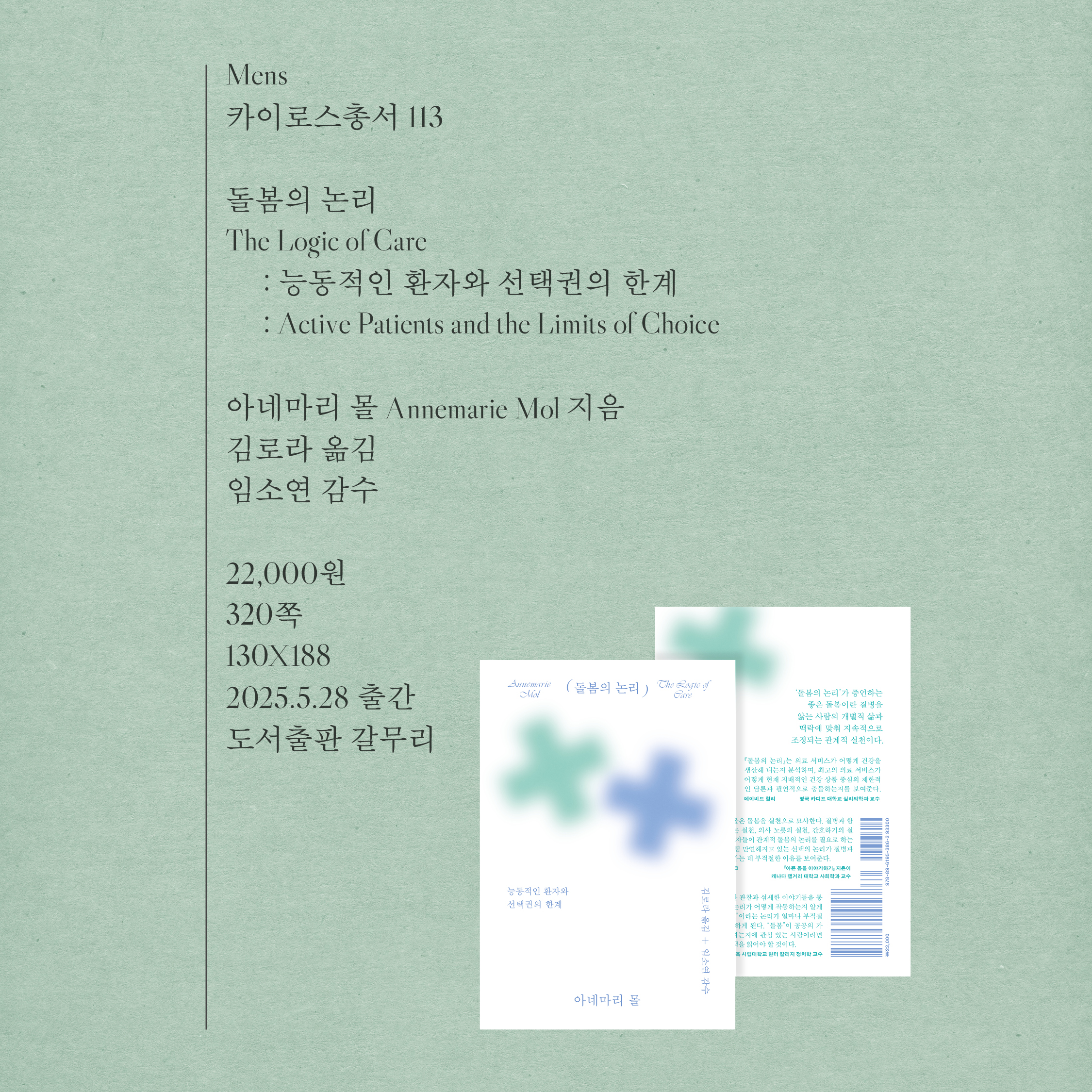 새 책! 『돌봄의 논리 : 능동적인 환자와 선택권의 한계』 아네마리 몰 지음, 김로라 옮김, 임소연 감수