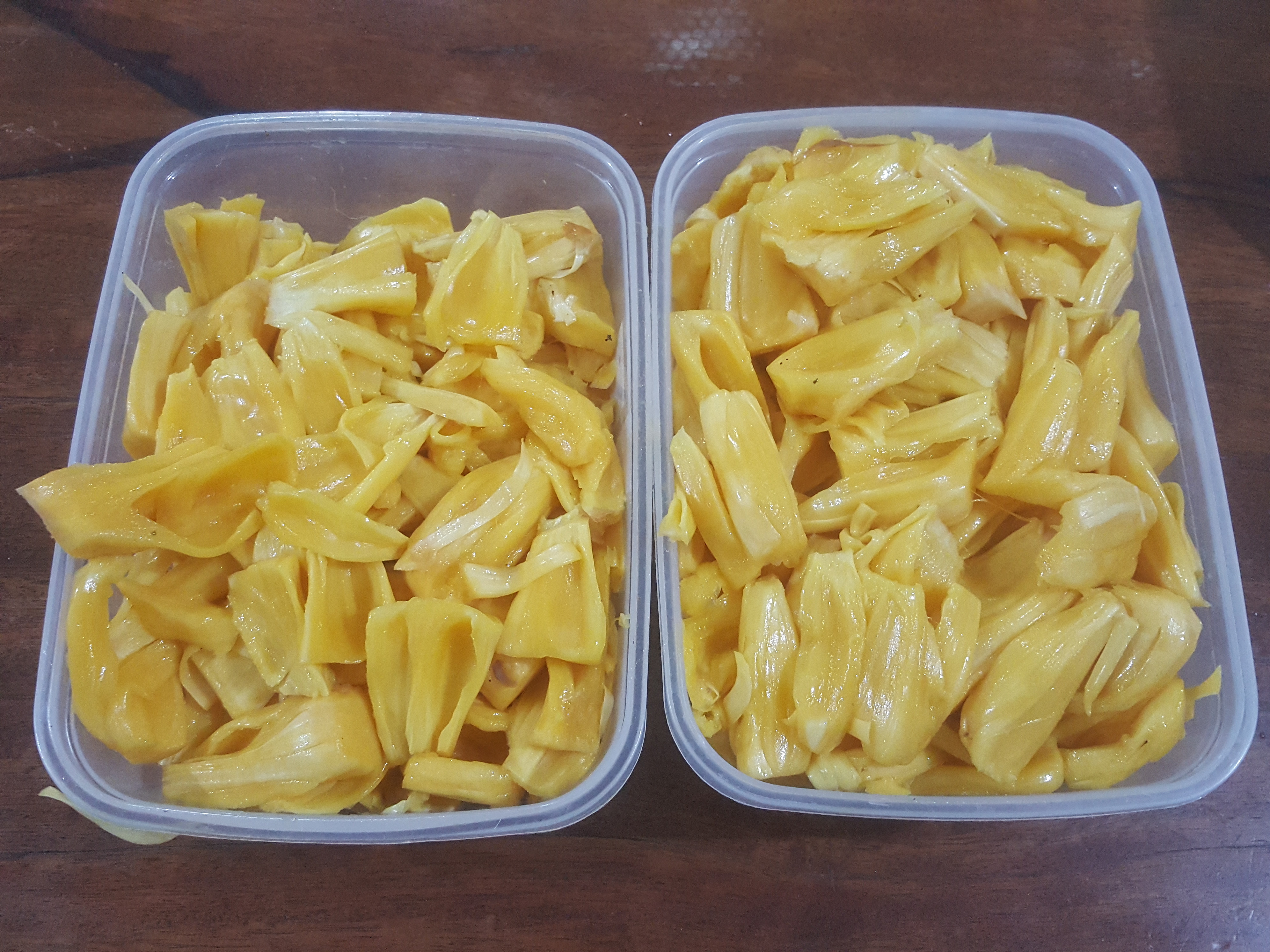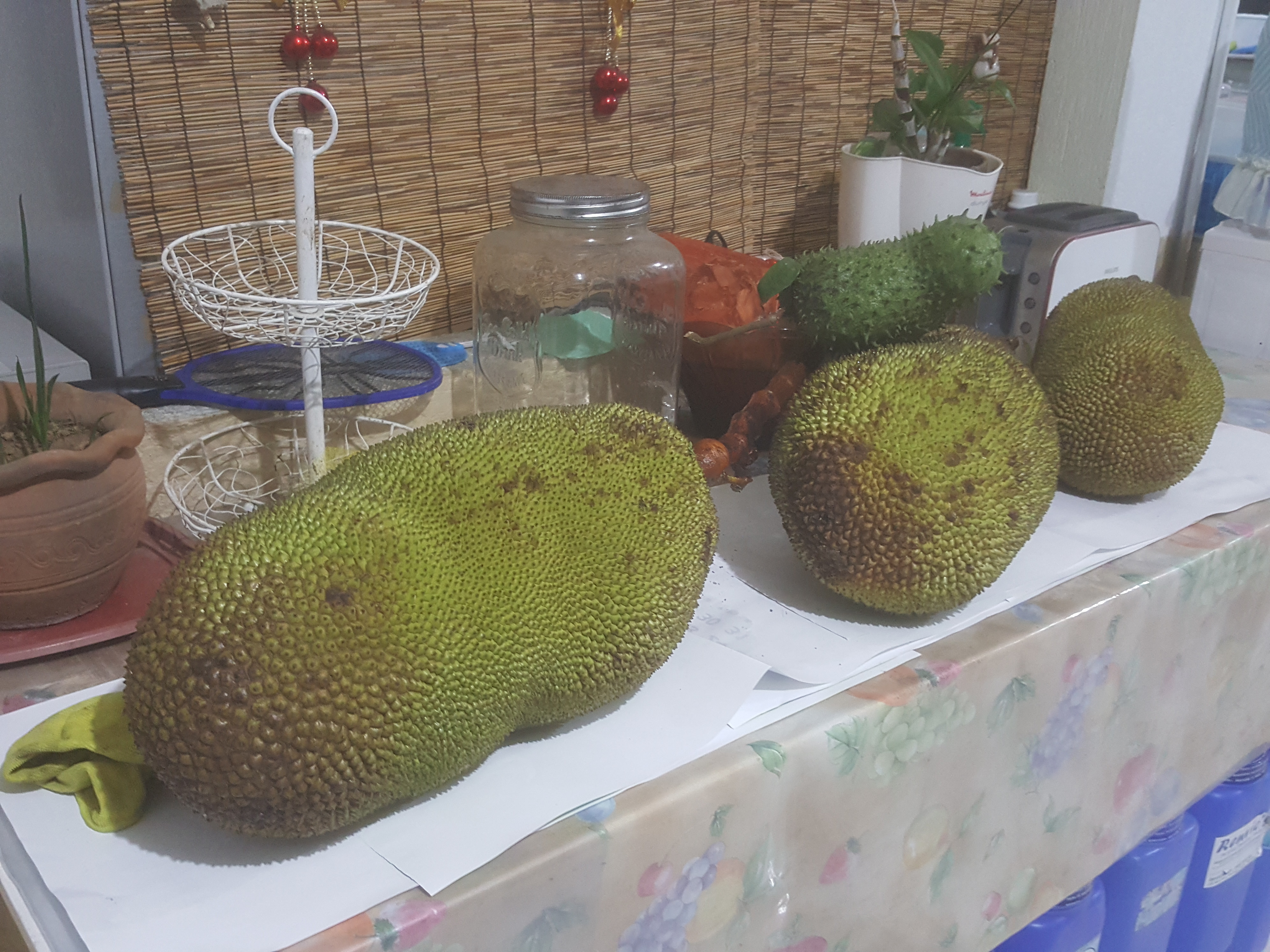 이 잭프릇은 그 엄청난 크기 때문에 먹을 수 있는 알맹이를 꺼내는데 시간도 많이 걸리고 여간 힘든게 아닙니다. 또 찐득찐득한 액체가 흘러나와 비닐장갑을 끼지 않으면 작업을 할 수가 없답니다. 그래서 이 잭프릇 열매를 해체할 때는 동물처럼 한마리 잡는다는 표현을 씁니다. ㅎㅎㅎ