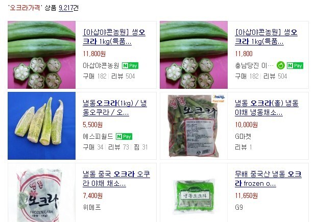 인터넷주문 킬로에 11800원이네요 생오크라같은경우 최저가입니다