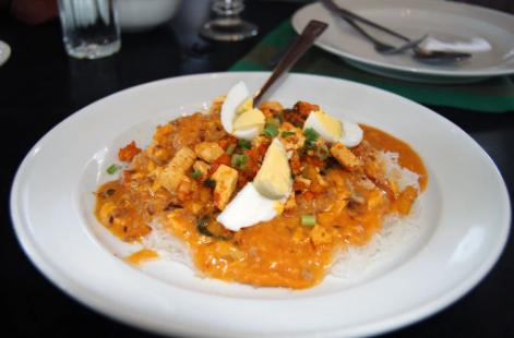 이 노란색 풍부한향을 지닌 스튜는 땅콩 소스로 만들어져 있으며,