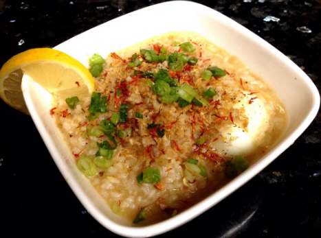 아침 식사와 merienda에서 자주 먹는 arroz caldo는 생강, 마늘, 양파 등으 이용해 요리되는 필리핀의 죽 입니다.