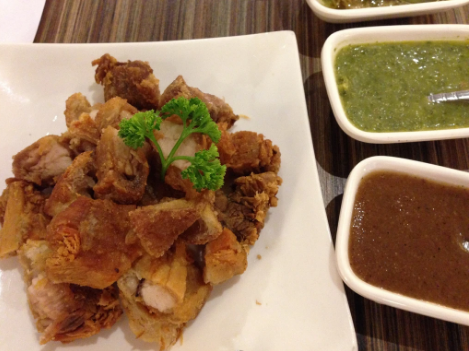 한국의 족발 을 튀김요리로 변화시킨듯한 비주얼과 맛 입니다.