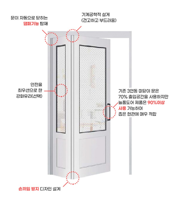 손끼임 방지 디자인으로 어린이에게 안전한 중문입니다.