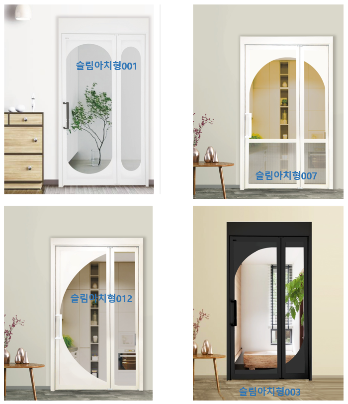 늘품도어의 다양한 슬림아치형 스윙도어입니다.