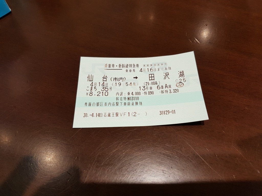 식사 중에 건네주신 신칸센의 표입니다.