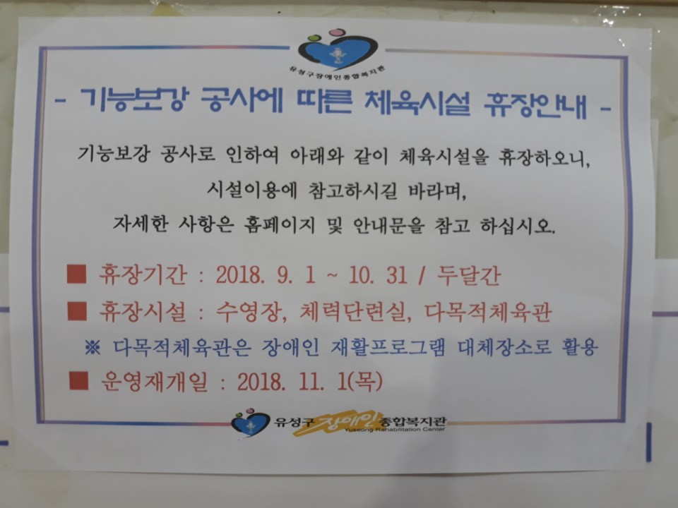 □ 장소 : 대전시 유성구 죽동 600번지 유성장애인복지관 실내체육관 ☎ 822-3637 프론트820-6900