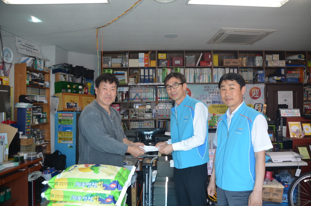 ▣ 0529 한국수자원공사 물관리센터 물사랑나눔단 쌀10K 12포 동구 : 최선화(용운 서구 : 이희진(도마 박미경(도마 김남희(월평 중구 : 정찬혁(대사 계성남(태평 사무실 대덕 : 박순복(오정 최명신(대화 김경만(중리 유성 : 김경희(반석 이기욱(송강 ▣ 배분봉사 : 김남희 김장섭 |
