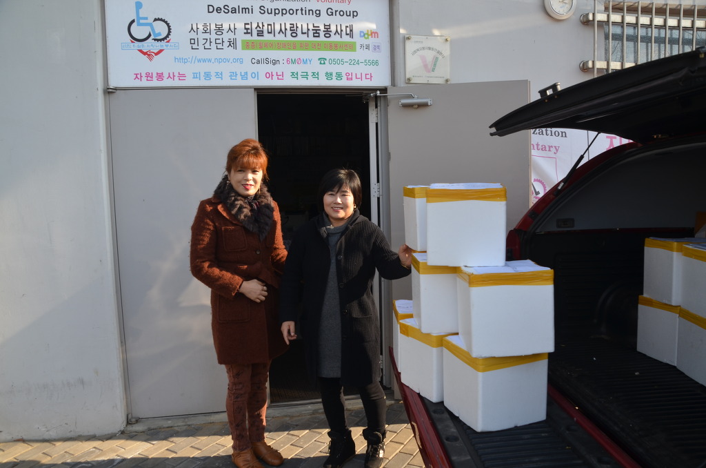 되살미에 물품이 지원되면 재가장애인 가정으로