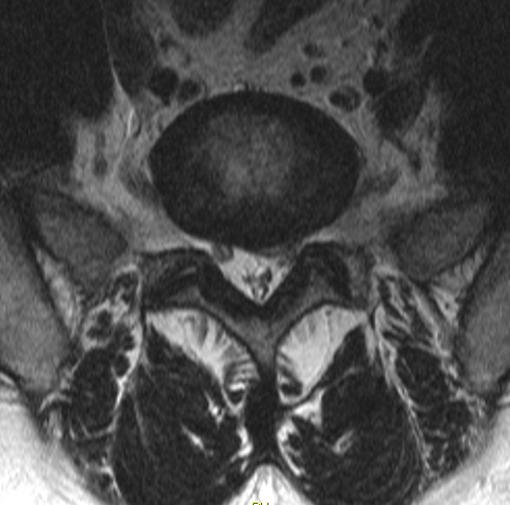 이것은 컴퓨터단층촬영(CT), 자기공명영상(MRI) 축(axial)사진으로 쉽게 확인할 수 있습니다. 반대로 척추관이 넓으면 디스크 탈출이 심해도 신경근(nerve root) 압박은 미미하여 통증이 가볍고 신경학적 증상도 가벼울 수 있습니다. 특히 급성 허리디스크 환자에서는 척추관 크기와 디스크 탈출 정도에 따른 예후 판단과 신경학적 검진에 의한 예후판단이 매우 중요합니다.