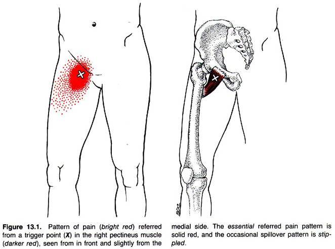 [증상]단독으로 오는 경우는 드뭄. 다른 3개의 내전근이나 장요근을 해결하고도 남은 TP주변의 방사통(사타구니, 서혜부)
