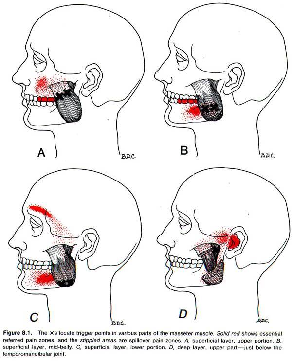 주의: 어설프게 찌르면 교근만 과자극함. 치료 후 심한 통증은 후두하(C1, C2)근육을 풀어주면 괜찮을 수 있다.