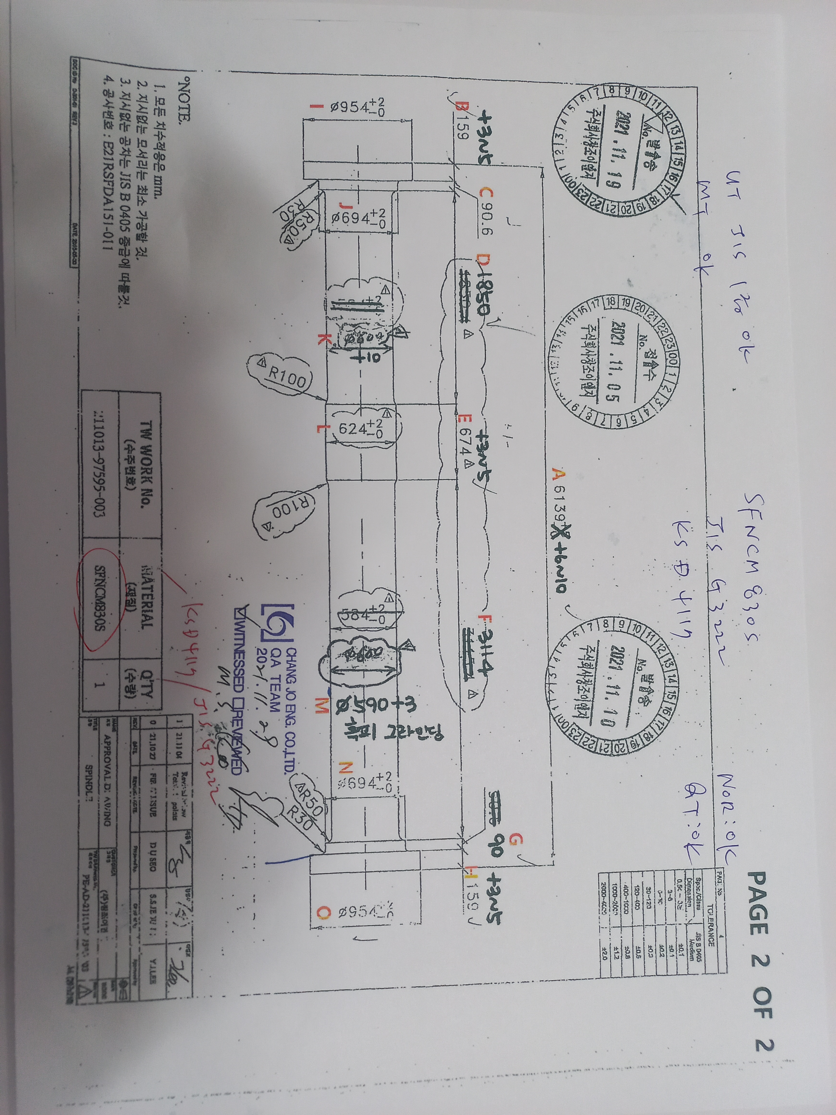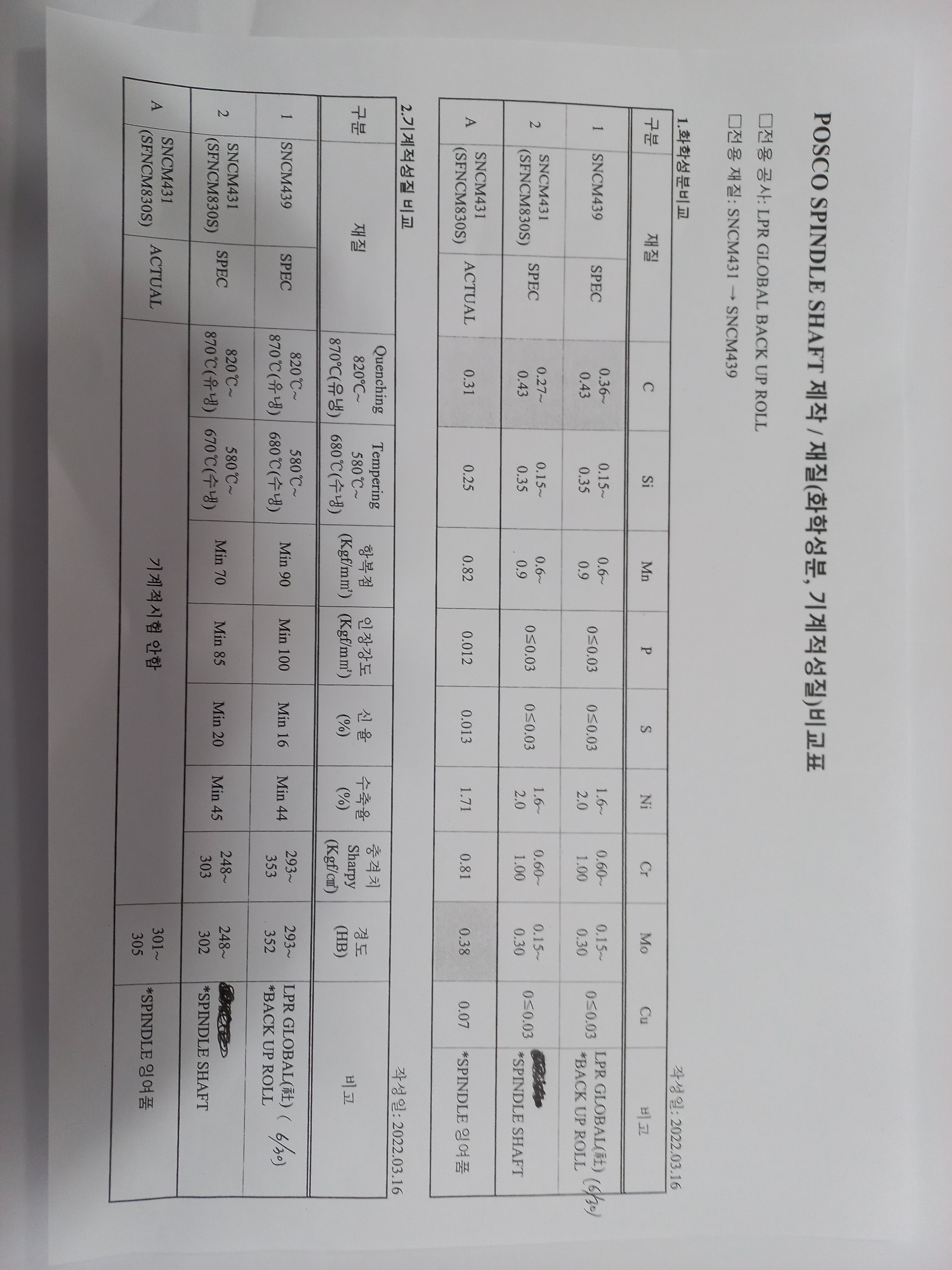 1.재질: SFNCM 830S (JIS G 3222/KS D4117)