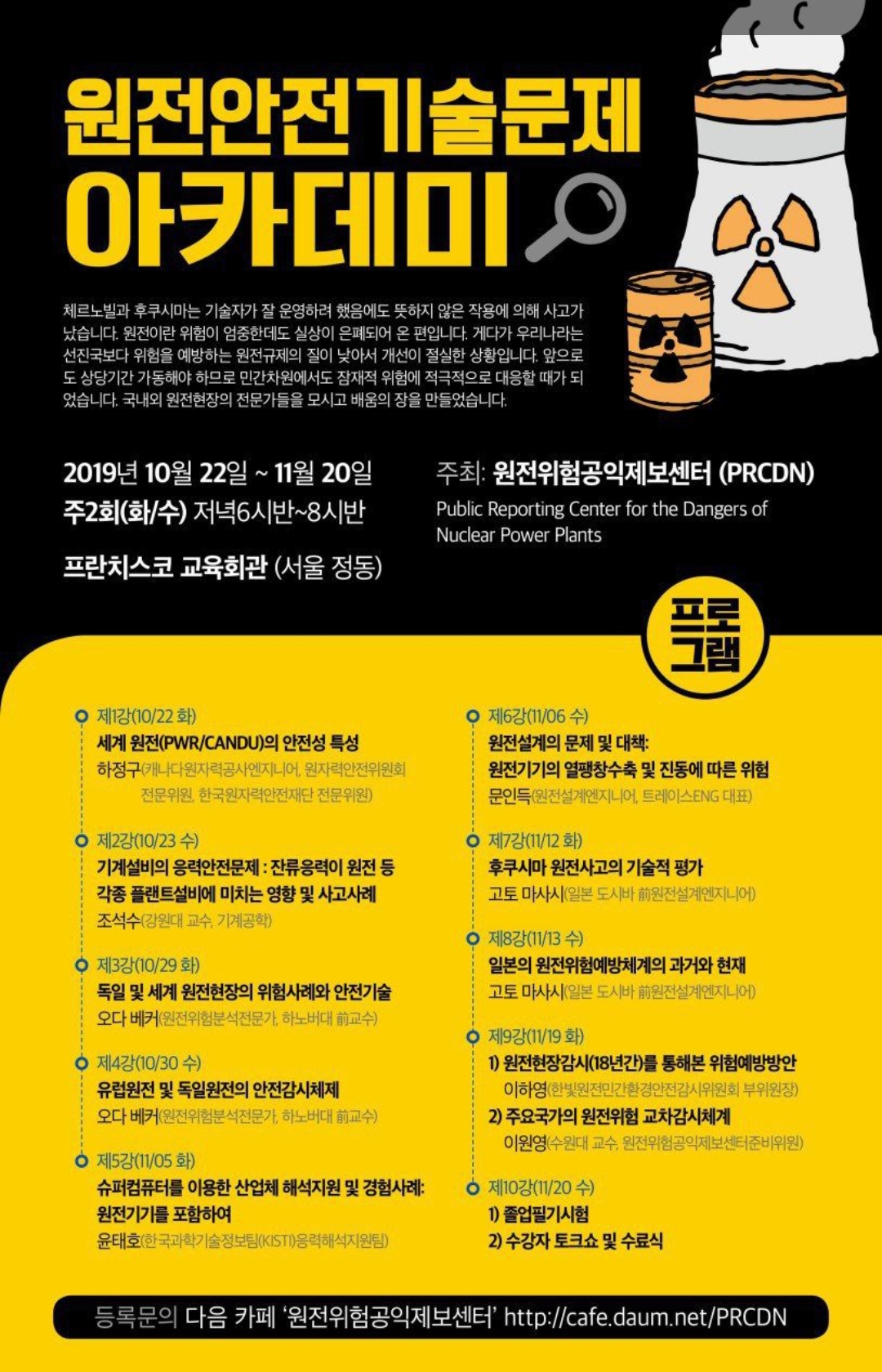 원전위험기술강좌 작성자문인득|작성시간19.09.12|조회수311 목록 댓글 0 글자크기 작게가 글자크기 크게가 원전안전기술에 대한 강좌가 개설되었습니다. 다음검색 현재 게시글 추가 기능 열기 북마크 공유하기 신고 센터로 신고 댓글 댓글 0 댓글쓰기 답글쓰기 댓글 리스트