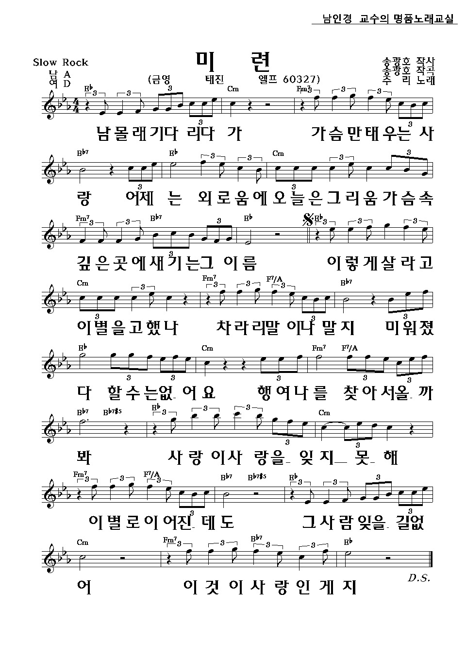 남인경 교수의 명품노래교실 여름교재 악보 / 주리 -미련 작성자아떼사라|작성시간13.06.17|조회수158 목록 댓글 0 글자크기 작게가 글자크기 크게가 다음검색 현재 게시글 추가 기능 열기 북마크 공유하기 신고 센터로 신고 댓글 댓글 0 댓글쓰기 답글쓰기 댓글 리스트