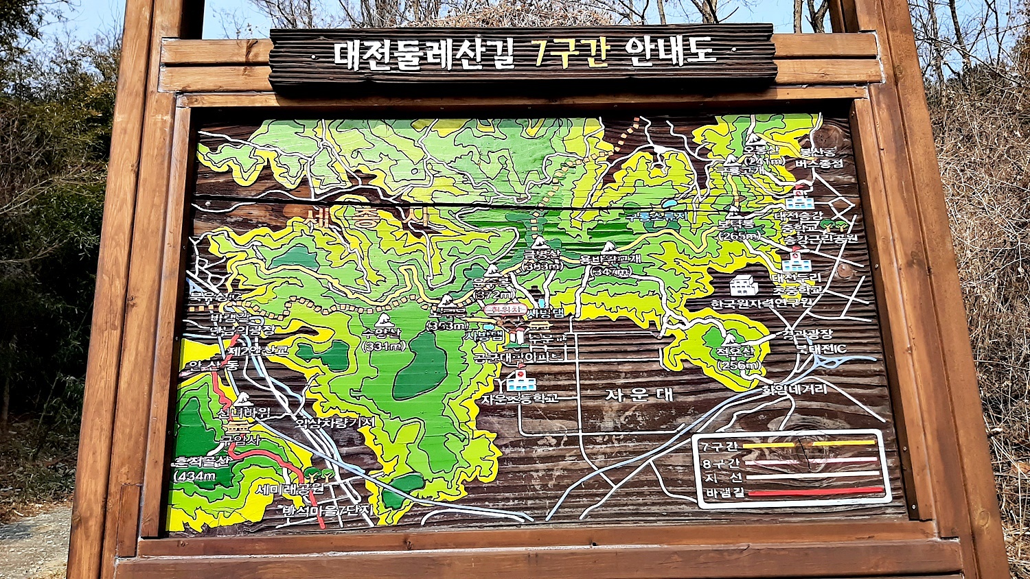 - 산행코스 : 외삼네거리 - 박산 - △(대전440) - 금병산 - △(대전410) - 적오산 - △(대전436) - 대전디자인고등학교 (뉴서울마운틴클럽)