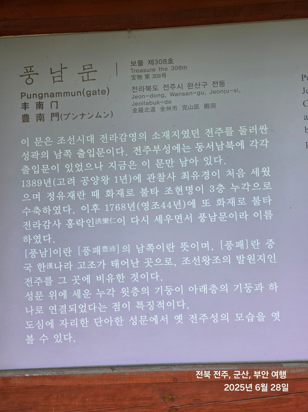 뚤레뚤레에 먹거리 천국인 남부시장이 있고 유일하게 남은 풍남문도 웅장하고
