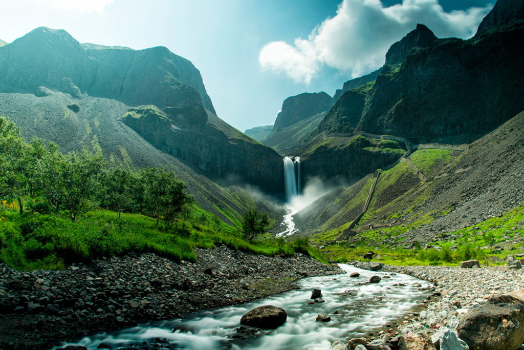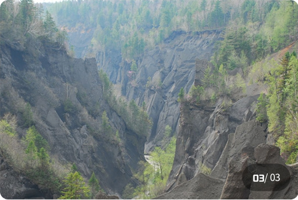 #금강대협곡 : 천지가 용암을 분출하여 만들어낸 V자 형태의 협곡