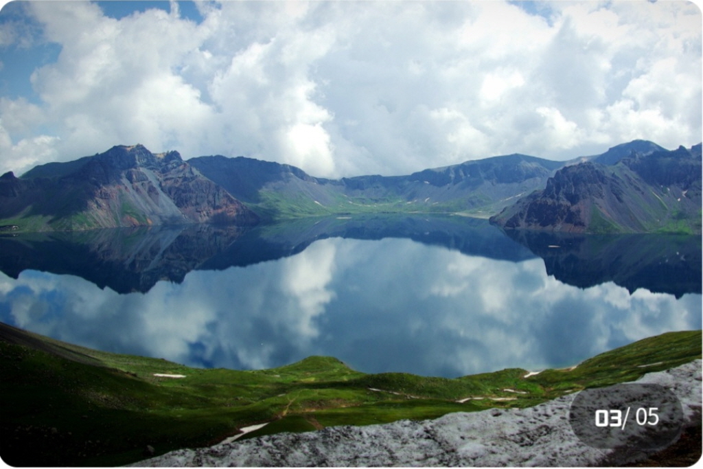 백두산 천지(북파코스) : 입산 후 셔틀탑승 1시간 이동 => 등정차량으로 환승 => 천지입구도착 => 도보 200M 이동