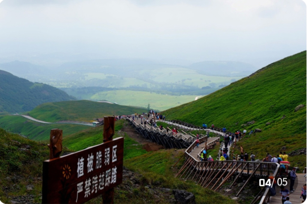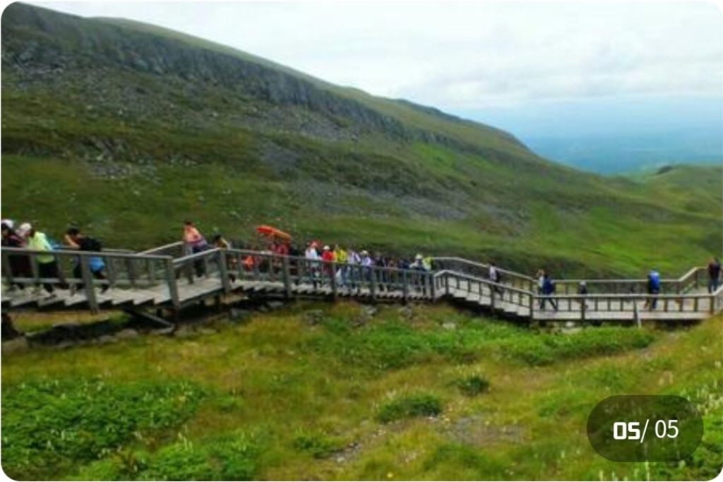 백두산 천지(서파코스) : 얕은 계단을 트레킹하며 오르는 코스