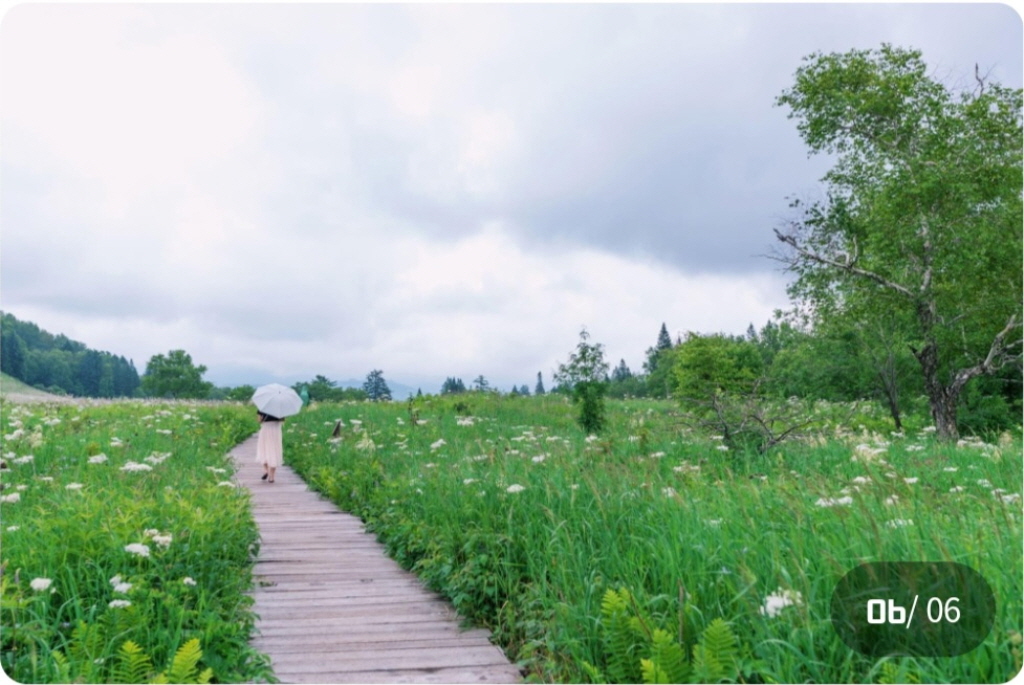 언덕을 따라 하늘로 이어지는 듯한 얕은 계단을 트레팅하듯 따라 올라가서 천지를 볼 수 있는 코스입니다.