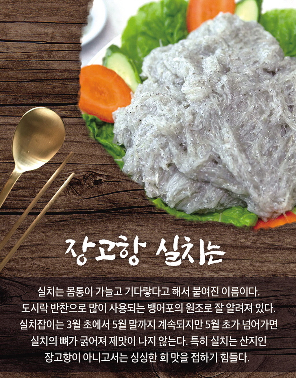 #장고항실치 는 몸통이 희고 실처럼 가는 어종으로 흔히들 한번씩은 반찬으로 먹어보았을 뱅어포가 바로 실치로 만든 것이다.