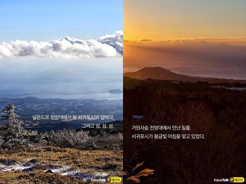 | 준비물 | ★ 신분증 필참(주민등록증,운전면허증,여권 중 택1) ☞무료 수하물 허용량:15kg(카페에서 선결제 서비스) ★★ 여행팀:간편한 여행(트레킹) 복장,방수방풍의,면수건,돗자리 등 한라산 산행팀:등산화(운동화),등산배낭,스틱,방수방풍의,면수건,돗자리,등산 복장 ★코로나19 감염증 예방을 위한 마스크 착용(미착용시 승차 불가) ★ 버너+코펠(원하는 분만) ★ 산행시 간식(과일, 육포, 초컬릿, 귤, 오이, 치즈,식수2리터이상 등) ★ 구급약(소화제, 진통제 등) ■ 무거운 짐은 버스에 두고 간편하게 여행을... **차내의 에어콘이 추우신 분이나, 에어콘에 약하신 분들은 꼭 긴팔 옷, 점퍼를 갖고 오세요. 여행 시에는 차에 두고 여행하시면 됩니다. **도시락:한가지 반찬만 가져오셔도 근사한 뷔페식 식사가 될수 있습니다. **방수방풍자켓, 우비, 헤드렌턴, 무조건 배낭속에 넣어 두십시오. |