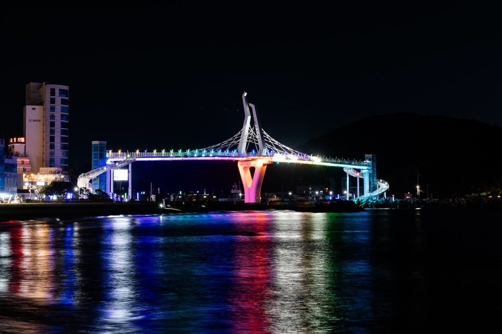 밤이면 명선도의 신비로운 야간 조명과 명선교를 야경으로 아름다운 바다도 감상할 수 있다.