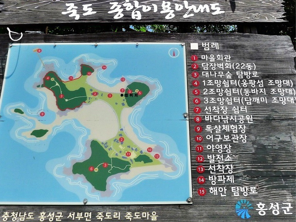 홍성군 서부면 서쪽에 있는 홍성군 유일의 유인도로 섬주위에 대나무가 많이 자생하고 있어 죽도라 불리운다.