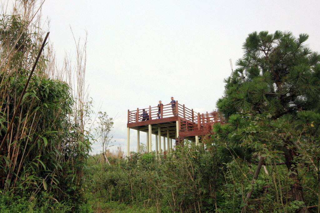 전망대에 오르면 확트인 천수만이 한눈에 바라보이며 바로 앞에는 ‘모섬’이라 불리우는 작은섬이 있는데, 홍성군 서부면 상황리 주변 해발고도 120m의 부엉재산이