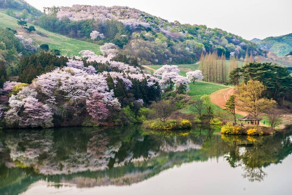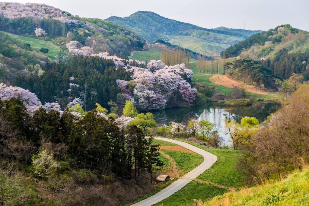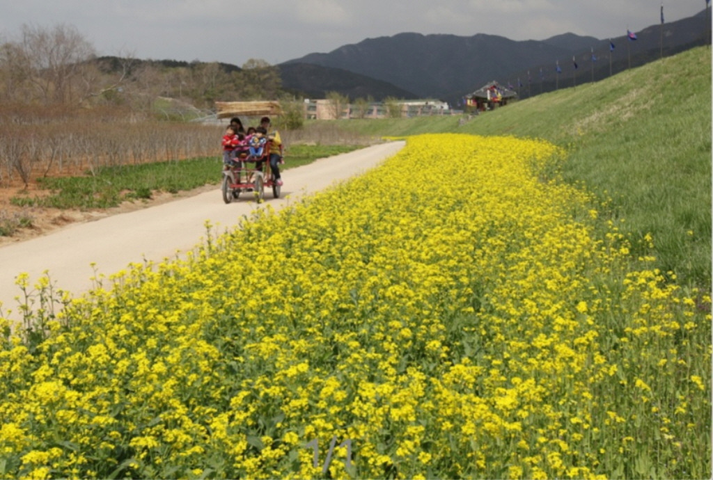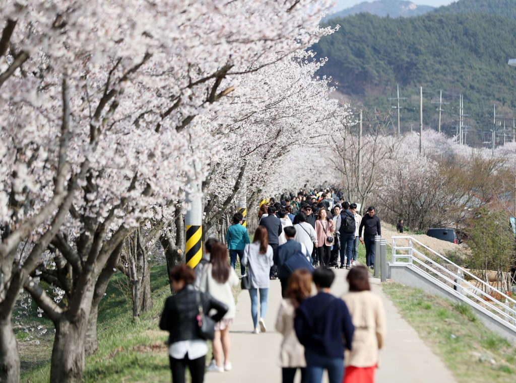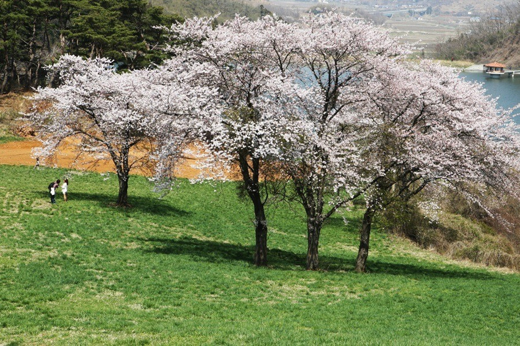 그 광경은 이미 유명세를 타 매년 벚꽃이 피는 4월 초에서 중순경에는 꽃분홍 능선에 풍요로움을 더하고 있다.