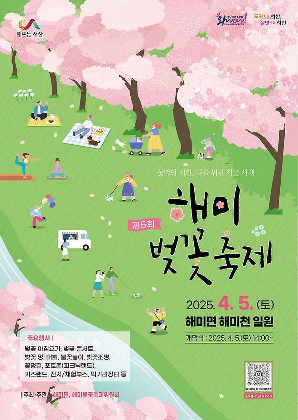 찾아가는 거리음악회, 농특산물 판매, 야간공연, 벚꽃 조명 운영 등 다양한 프로그램은 물론 해미읍성, 순교성지 등 주변 관광지와 함께 특별한 추억을 선사할 준비가