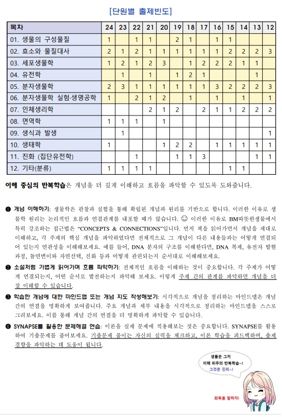생물 공부는 뭐 별거없고 소설읽듯이 그냥 기본서 회독 강조합니다.