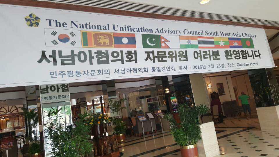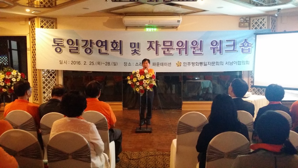 민주평통 서남아협의회(협의회장 엄경호)는 2016년 2월 25일부터 28일(3박4일) 까지 스리랑카 콜롬보 소재 갈라다리 호텔에서 10개국 90여명의 자문위원들이 참석한 가운데, 통일강연회 및 자문위원 워크숍을 개최하였다.