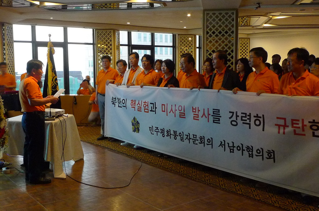 하나, 민주평화통일자문회의 서남아협의회 자문위원들은 한반도 안정과 평화와 통일을 가로막는 북한의 핵실험과 미사일 발사 강행을 강력히 규탄한다.