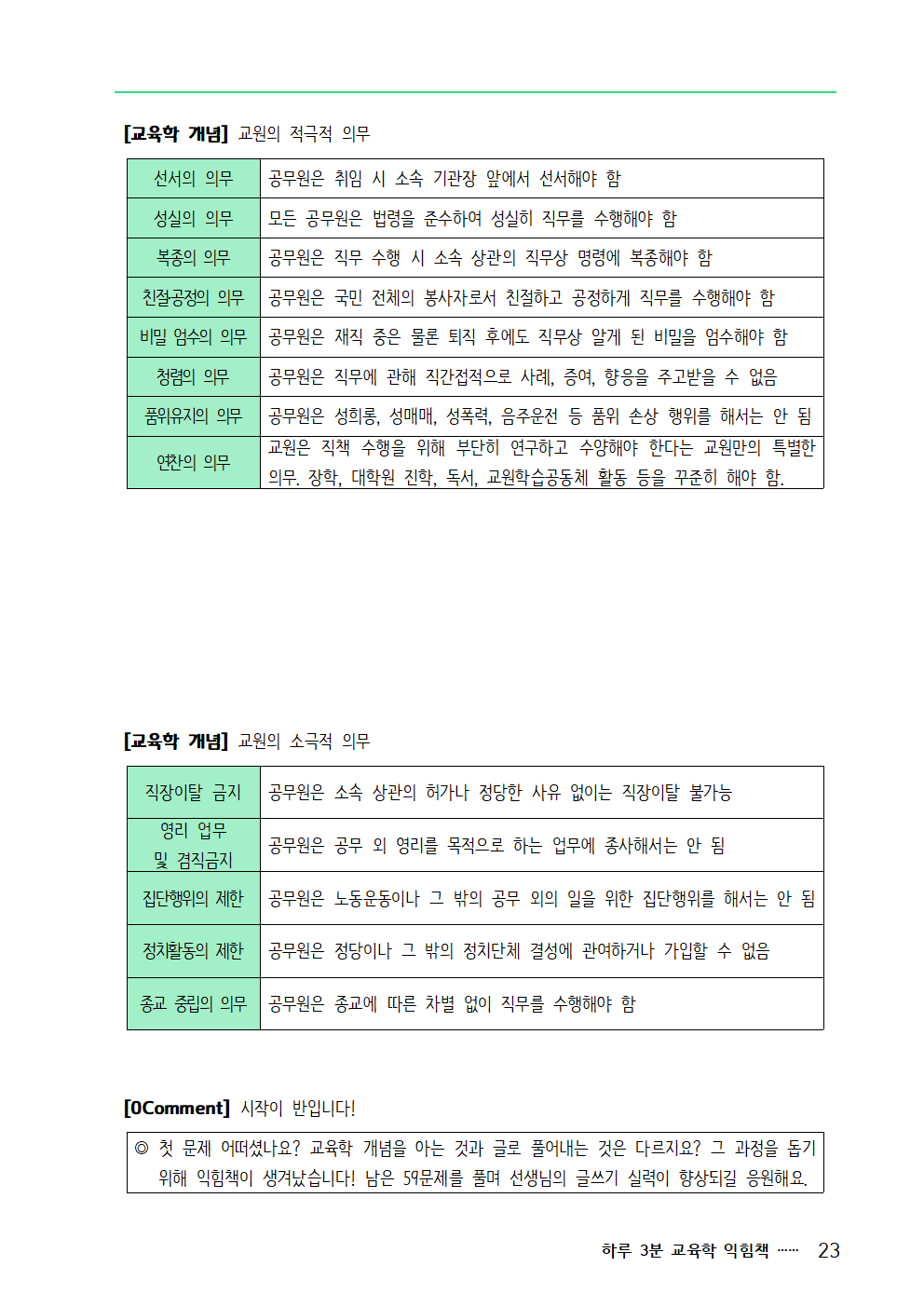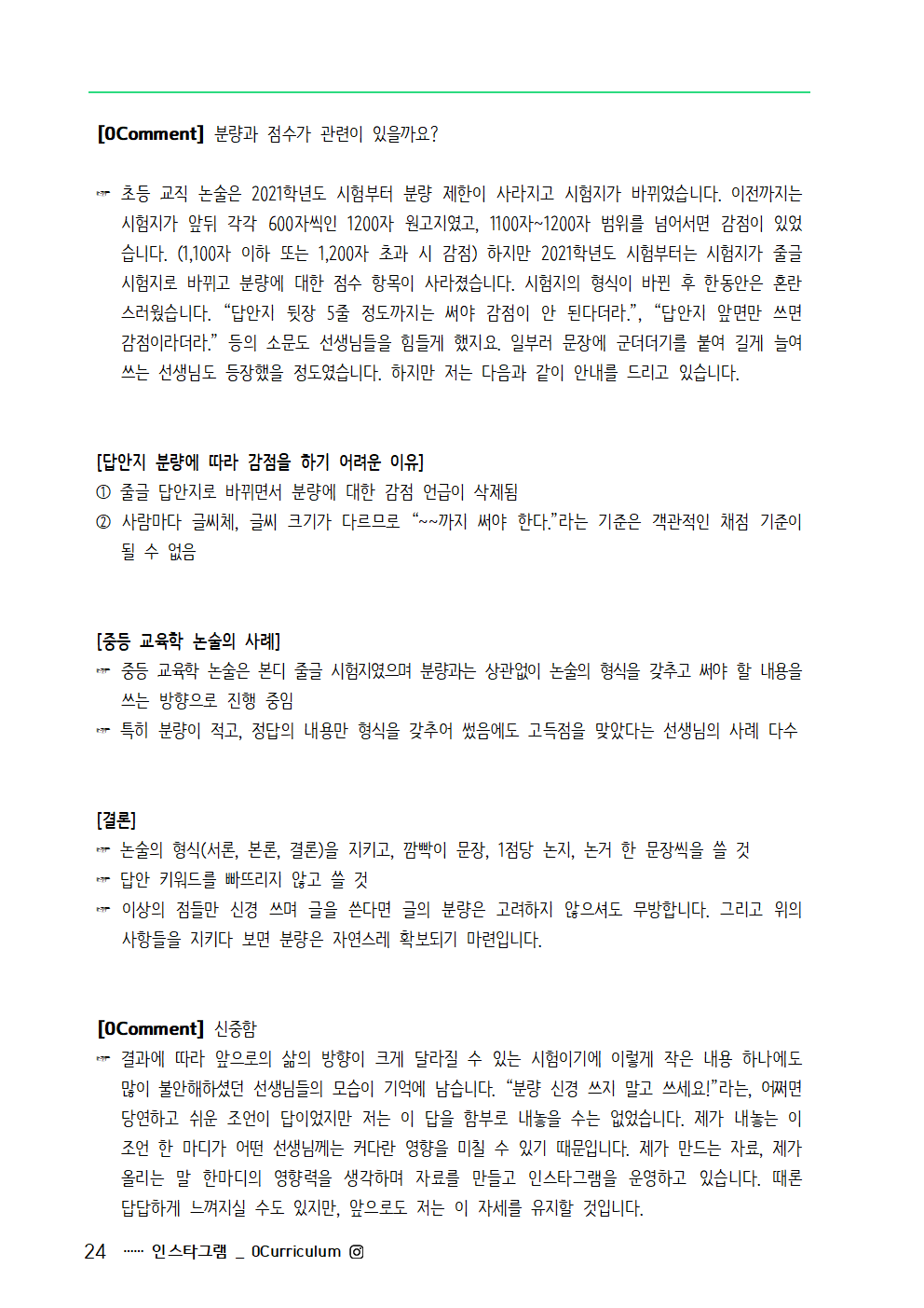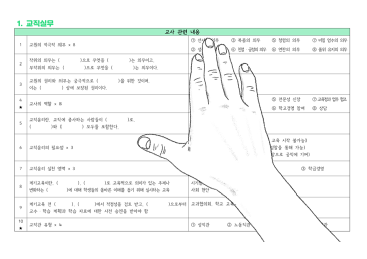 - 임용 시험 관련 활동을 5년째 해오면서 다양한 경험을 쌓았습니다. 그 과정에서 알게된 팁, 소소한 이야기, 조언, 공부 방향 등 적재적소에서 중요한 내용을 "0Comment"로 전달하고 있습니다.