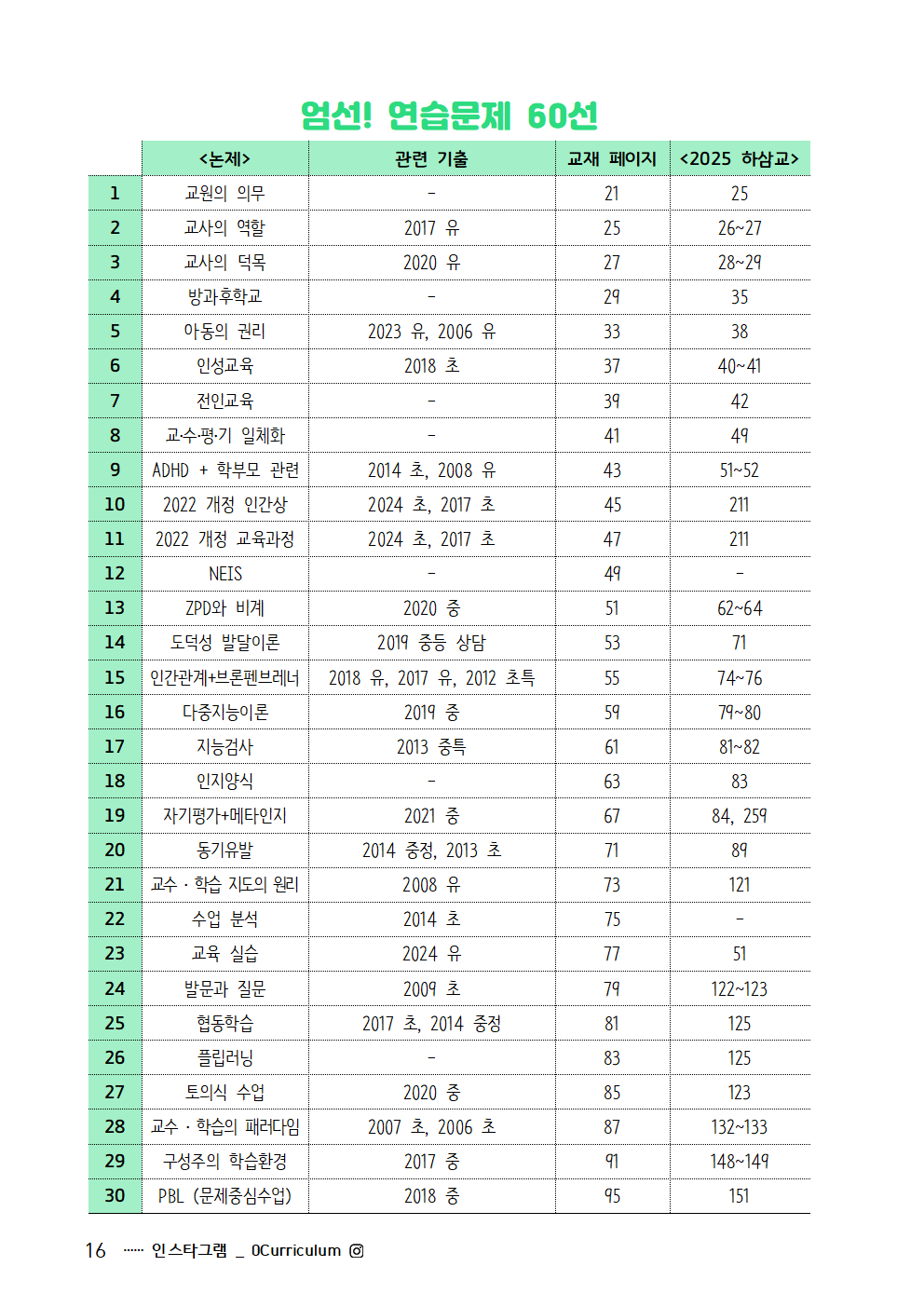 <2025 익힘책> 연습문제는 철저히 기출 분석에 기반해서 출제되었습니다. 출제된 개념이 곧바로 다시 출제되기는 어렵습니다. 하지만 출제된 개념과 같은 범주에 있는 개념은 유력하지요. 또 다른 학교 급에서 출제된 개념이 우리 학교 급에서 출제될 가능성이 매우 높습니다. <2025 익힘책>의 연습문제 60선은 출제된 핵심 개념을 다시 점검할 수 있는 문제들로 구성했습니다.