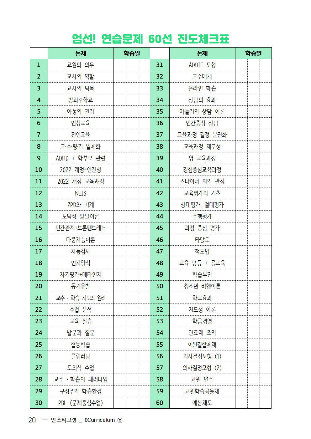 "진도 체크표"!