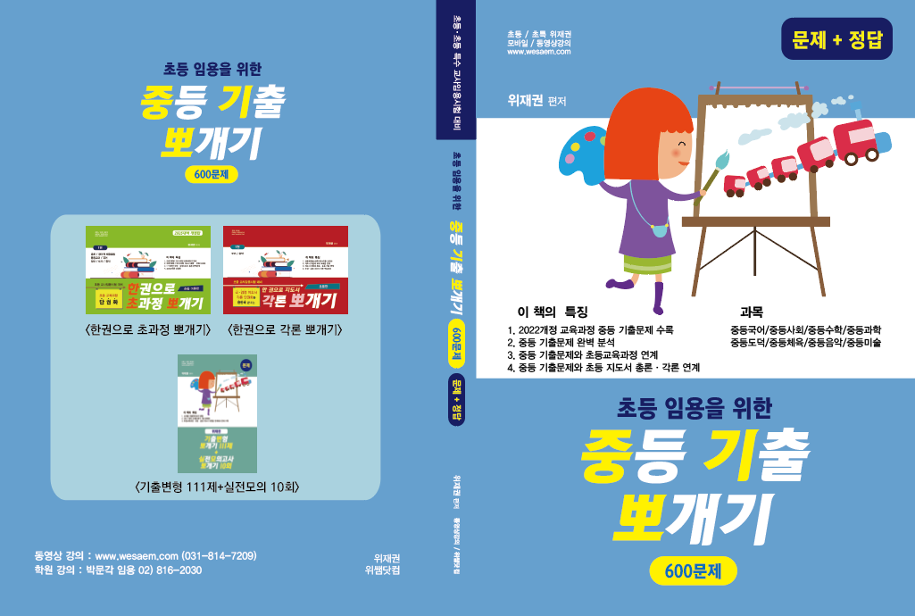 | 교재명 : 초등 임용을 위한 중등 기출 뽀개기(600문제) 저자 : 위재권 교재 정가: 40,000원 |
