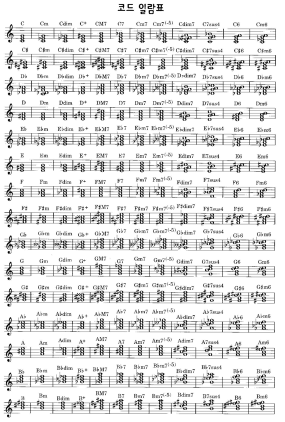 기본코드는 메이저, 마이너, 7th 이정도가 기본코드라고나 할까요.. (정확한 음악적 지식은 아님돠~~)