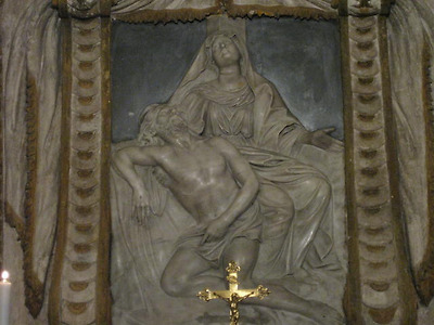 지하에 위치한 작은 교회 내부에 있는 Pieta