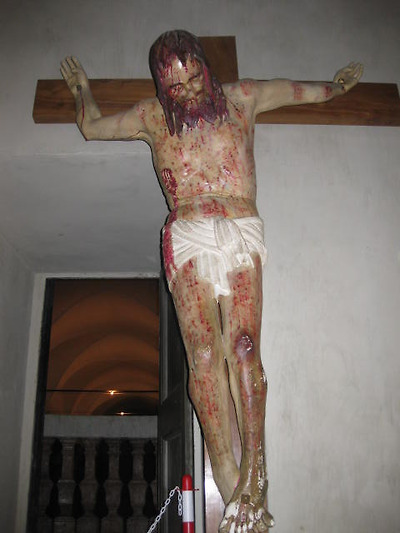 가운데 예수님의 얼굴과 머리(혈흔 자국이 선명하다)