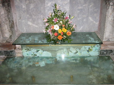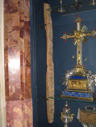 거룩한 땅 (Santa Terra) - 골고다 언덕에서 가져온 거룩한 흙 - 교회 지하 헬레나 상 옆에 위치