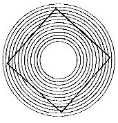 원 사이에 있는 사각형의 선이 휘어져 보이죠?