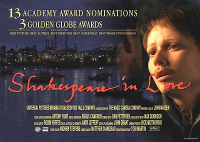 존 매든의 <셰익스피어 인 러브>는 셰익스피어의 모호하게 전설로만 추측되는 젊은 시절을 중심으로 초자연적 운명론적 비극인「4대비극」을 제외하고 단지 두 가문사이에서 벌어지는 인간들의 갈등과 동서고금을 통해 최대의 연애 드라마라 일컬어지는 <로미오와 줄리엣>을 택함으로써 고급성과 대중성을 동시에 확보한다. 특히 톰 스토퍼드의 각본은 실재의 셰익스피어의 삶에 <로미오와 줄리엣>을 병치시킴으로써 원작이 지닌 극적 상황과 작가가 살던 역사적 상황이라는 이중적 상황으로 자연스럽게 관객을 끌어들이게 되는데, 이러한 방법은 당시에 비해 엄청나게 변화된 시각을 지니고 살아가는 관객으로 하여금 영화적 상황을 자연스럽게 이해할 수 있는 계기를 마련케 한다.