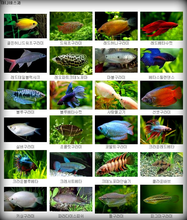 특징: 구라미의 종류 중 가장 자고 예쁜 물고기이다. 특히 수컷의 아름다움은 그 어떤 열대어도 미치지 못한다. 세계적으로 굉장히 인기가 높은 물고기로 튼튼하여 기르기 쉬우며 성질이 온순하여 소형어와 혼영에도 적합하다. 어항은 조명을 약하게 해주고 수초를 많이 심어 숨을 곳을 만들어준 어항을 좋아한다. 수컷의 색깔이 암컷보다 뚜렷하게 짙다.