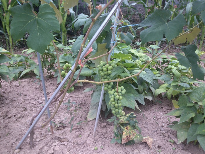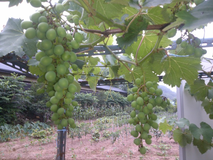늦게 수확하는 품종이라 아직 거봉 모양이 나지 않네요.