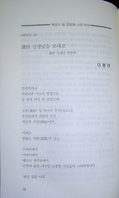 제 개인적으로 문학의 스승님은 <시선 정공채 >선생님이지요...