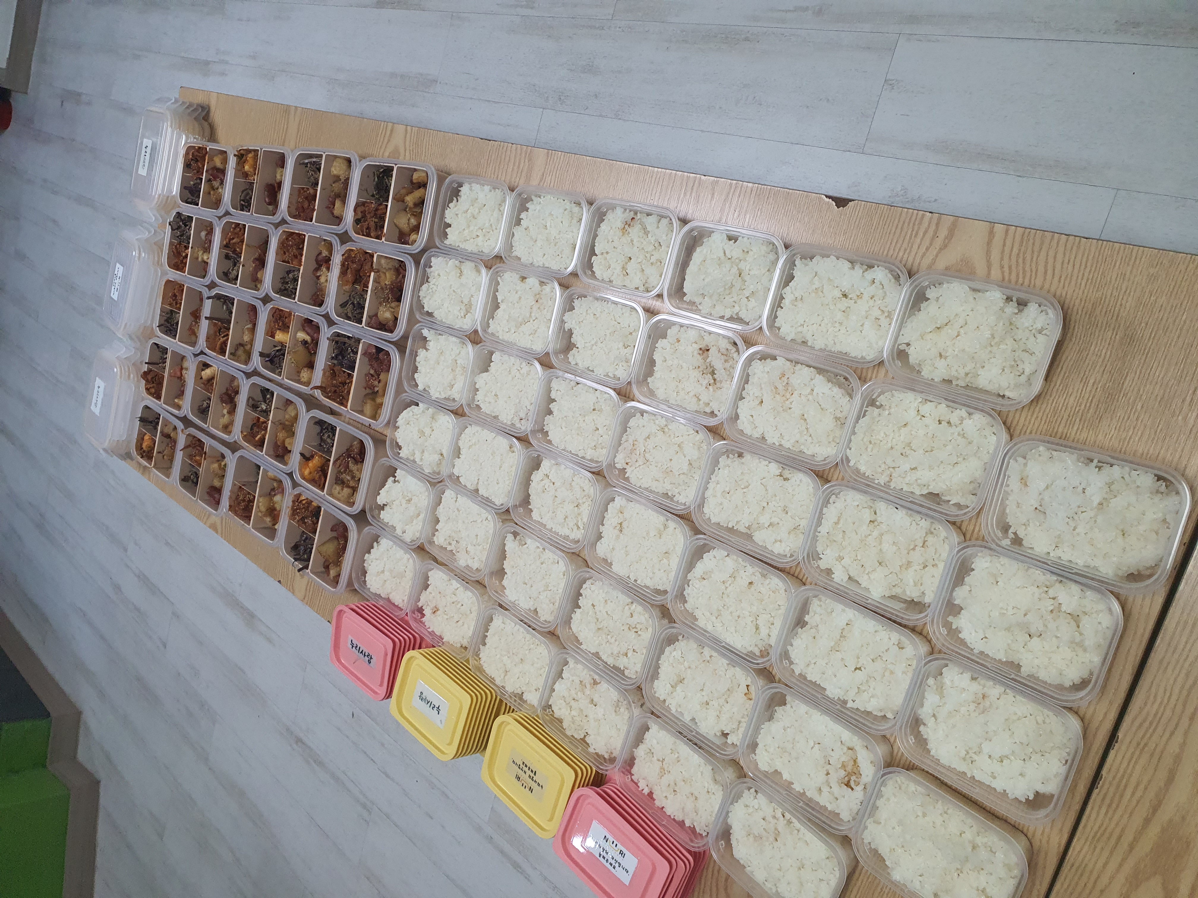 (아참 밥량 조절 부탁드려용. 도시락+저녁식사로 보통 누리사랑전기밥솥 2회정도면 충분합니다.) -