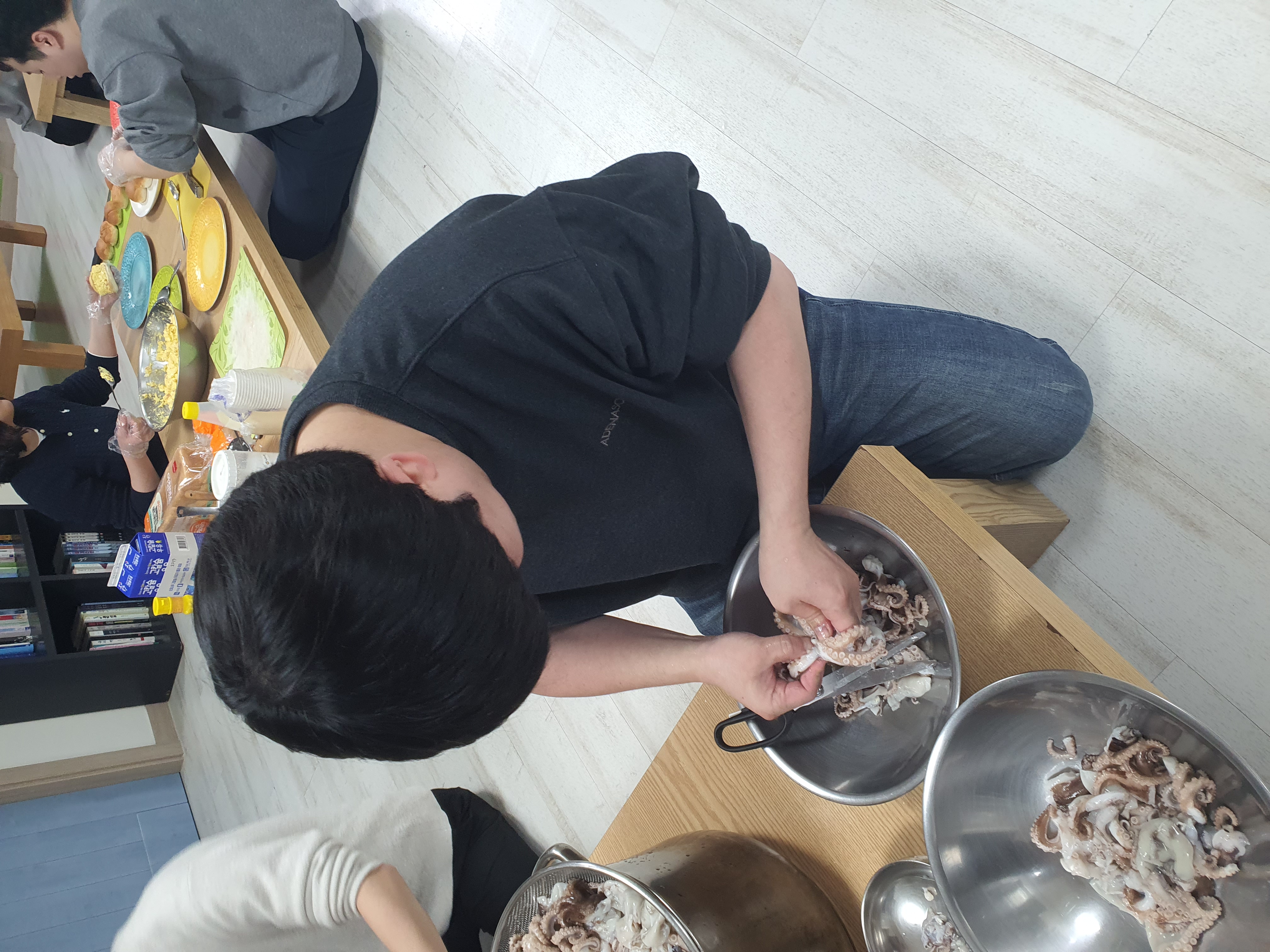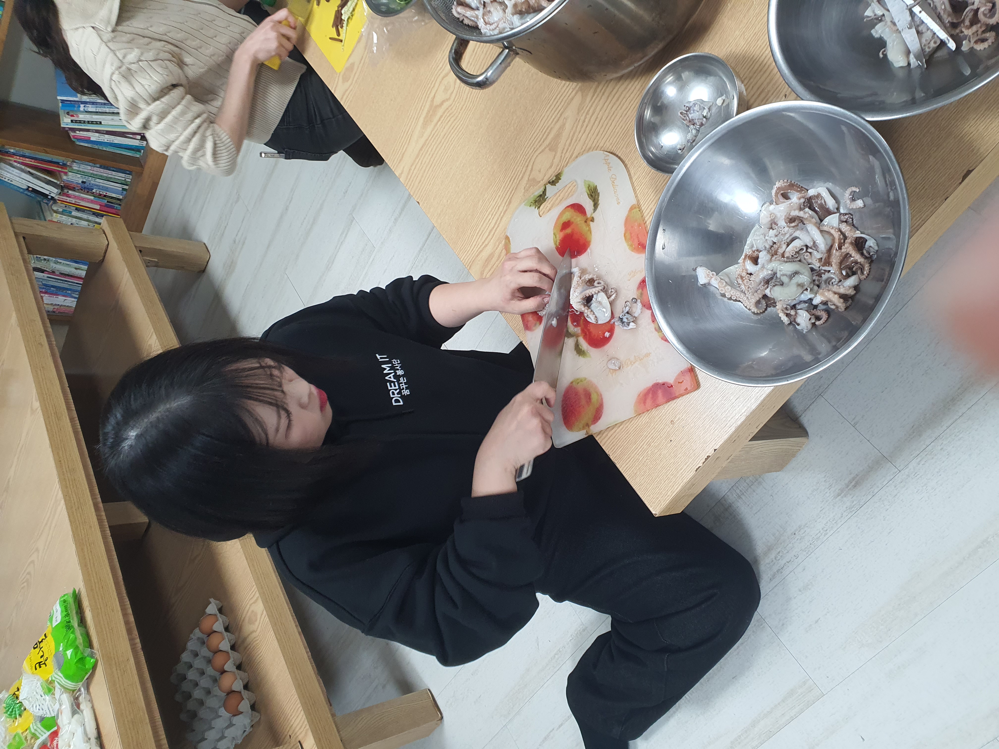 쭈꾸미도 썰어주면 드디어 요리가 완성인건가...